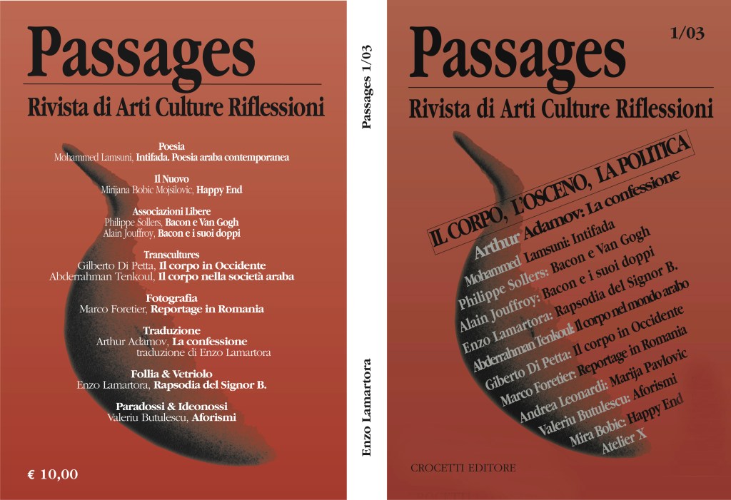 Passages n. 1/2003 https://www.amazon.it/corpo-politica-Enzo-Lamartora/dp/8883060954/ref=sr_1_9?qid=1673968575&refinements=p_27%3AEnzo+Lamartora&s=books&sr=1-9 passages3_kdp-definitiva_removed